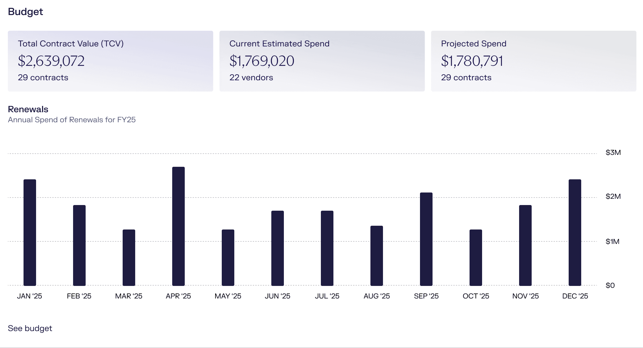 Current and project spend budgets based on contract terms