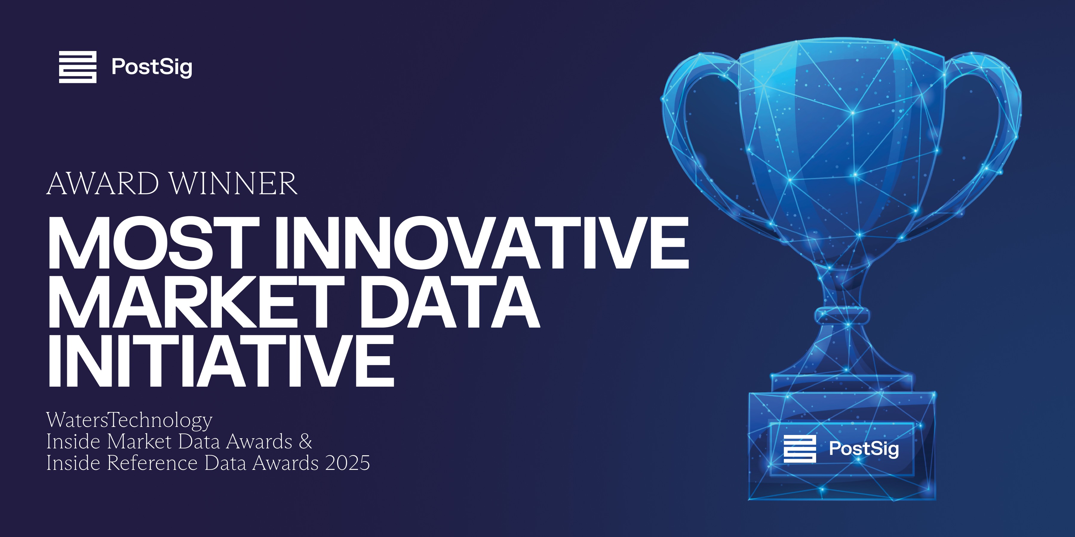 Today, we’re excited to share some big news: PostSig has been recognized as the Most Innovative Market Data Initiative at the WatersTechnology Awards 2025!
