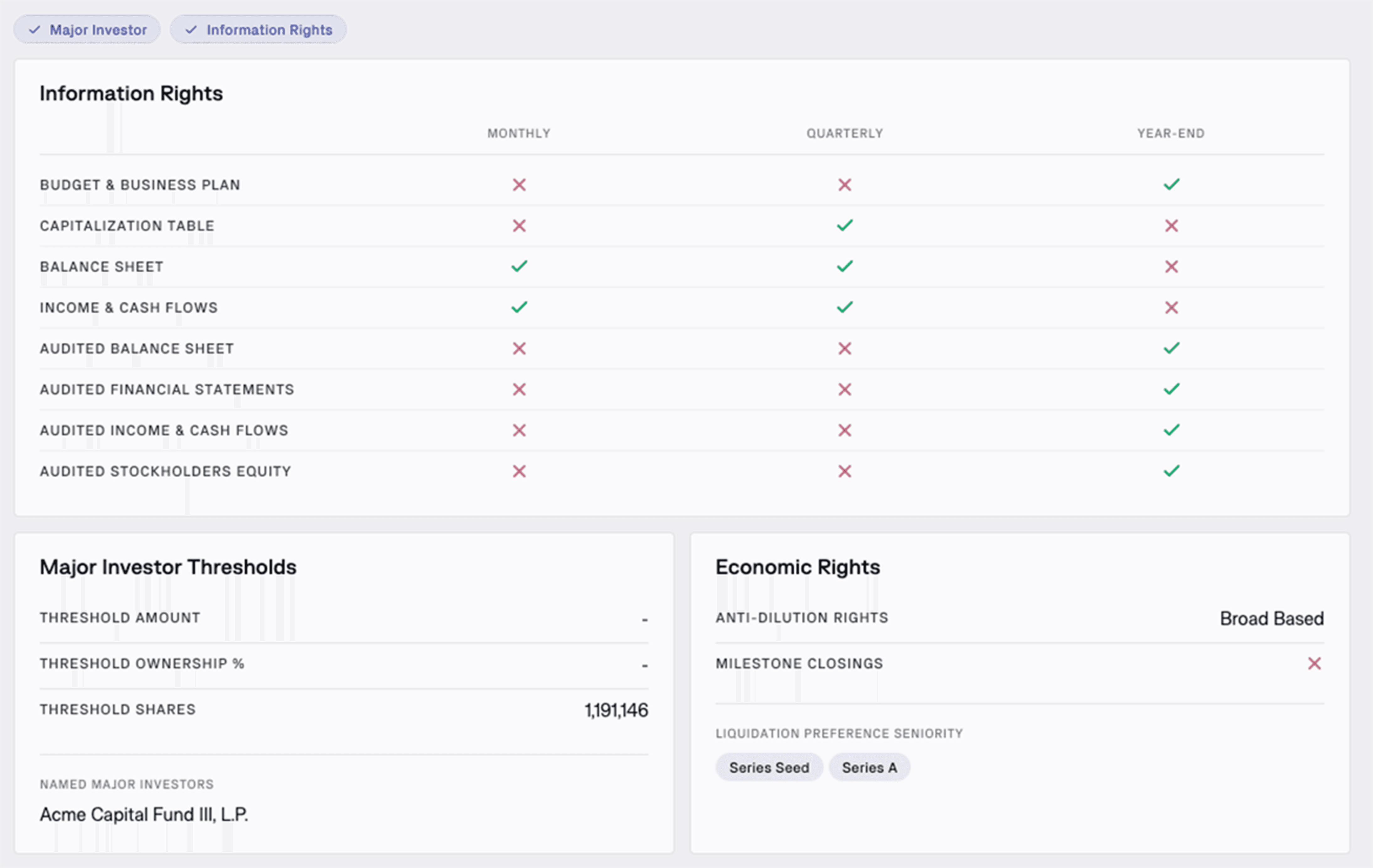 Powered by LineageAI™, Investor Rights Intelligence connects every agreement, amendment, and side letter into a living structured chain. When definitions change or thresholds shift, context is preserved, and you know exactly where you stand.